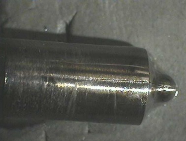 Aqui um exemplo de um Bico injetor sem furos em sua cúpula, ou seja, sem saída de óleo, onde a pressão oscila de um valor mínimo, que é sempre de aproximadamente 100 bar, até um valor máximo, que é variável de acordo com cada tipo de motor e condição momentânea.